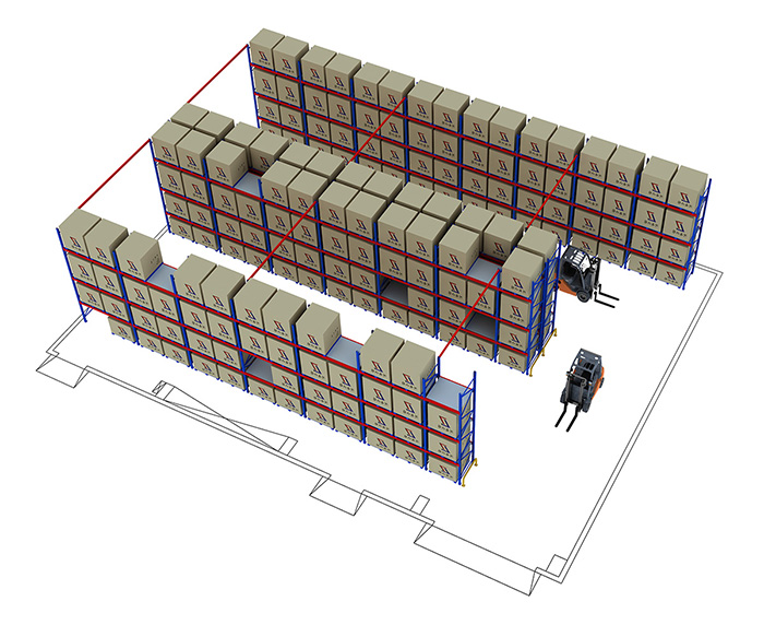 方案技術(shù)說(shuō)明: 1.重型橫梁式貨架,采用叉車取貨;